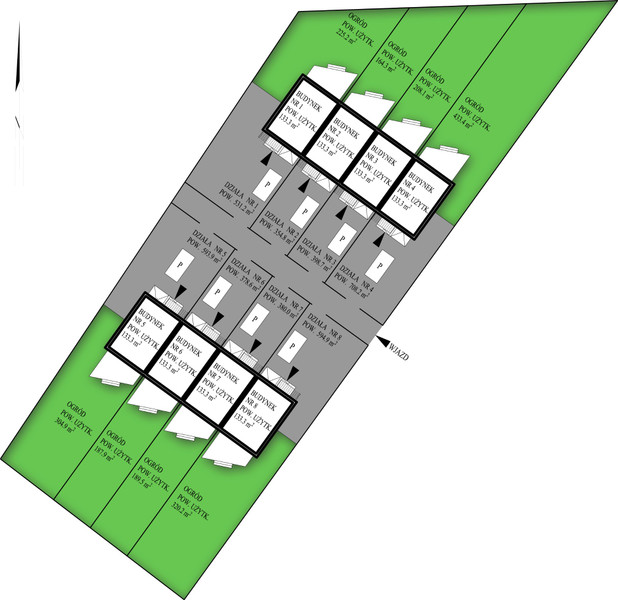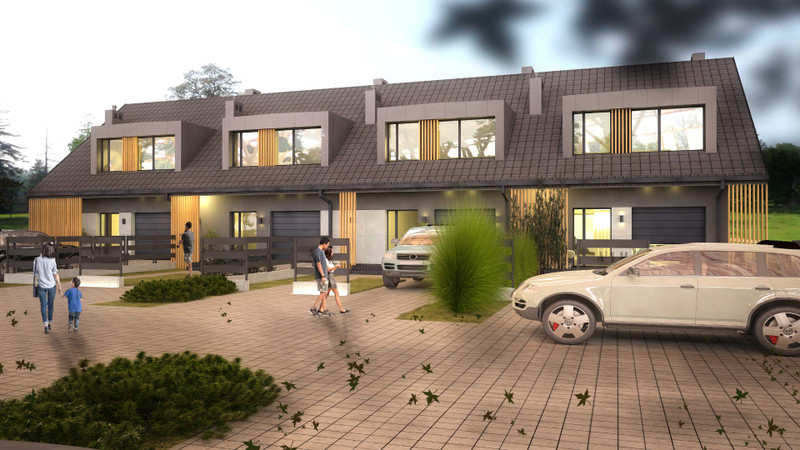 Oferujemy nowoczesne domy szeregowe o powierzchni 133 m² każdy,