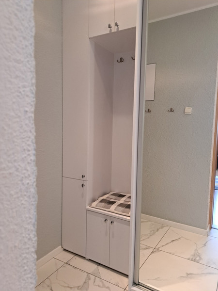 • duży korytarz - ok. 8,7m2 z nowoczesną, pojemną szafą w zabudowie z wykonanym na wymiar wieszakiem wraz z siedziskiem i szafkami na buty.
