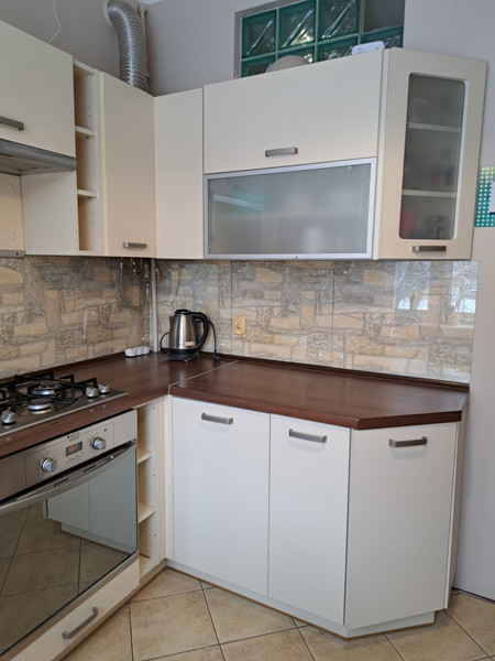 • widna oddzielna kuchnia - ok. 8,5 m2 od strony zachodniej ,wyposażona w zabudowę kuchenną i niezbędne AGD : kuchenka gazowa, piekarnik elektryczny, zmywarka w zabudowie, nowa lodówka wolnostojąca oraz podręczny stolik z 2 krzesłami,