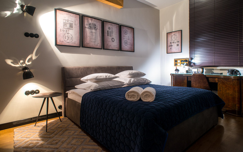 Duży salon z aneksem kuchennym 25 mkw, sypialnia 16 mkw, łazienka 9mkw.