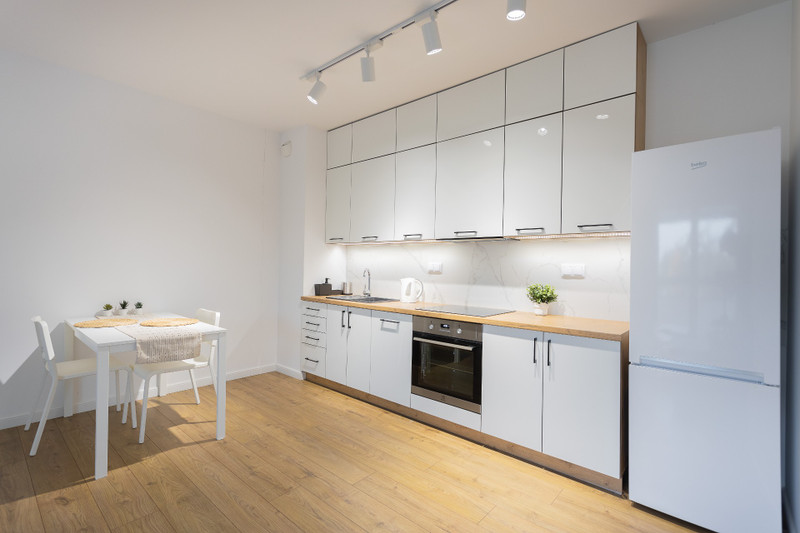 - Kuchnia wykonana przez stolarza, fronty akrylowe z cichymi domykami