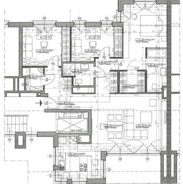 • cztery duże wbudowane szafy (w tym garderoba walk-in)