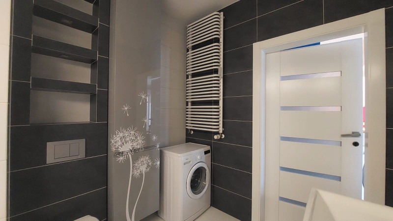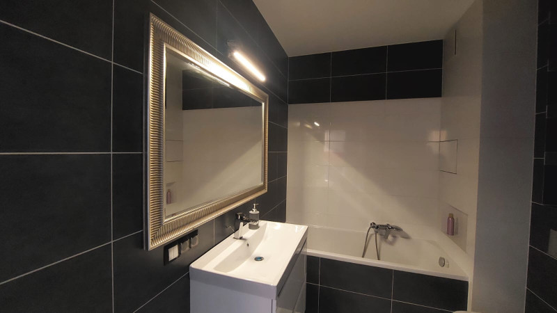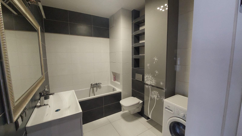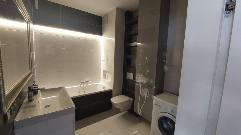 Mieszkanie w pełni wyposażone w sprzęt AGD (lodówka, piekarnik, okap podsufitowy FRANKE na pilota oraz nowa zmywarka i płyta indukcyjna). Meble kuchenne i szafy w zabudowie o wysokim standardzie (lakier połysk) robione na zamówienie. W salonie dodatkowo klimatyzacja i podłoga z wysokiej jakość paneli. W łazience wanna a także lakierowane meble robione na wymiar. Mieszkanie posiada dużo przestrzeni do przechowywania rzeczy tj. dwie bardzo duże szafy w zabudowie (przedpokój, sypialnia). Mieszkanie, oczywiście sprzedawane z pełnym wyposażeniem znajdującym się w zabudowie a także miejscem w garażu podziemnym i komórką lokatorską