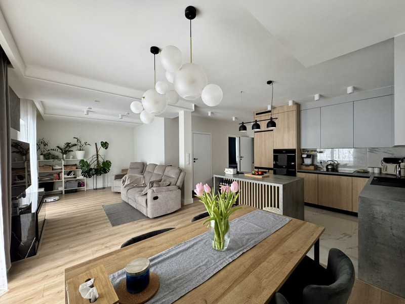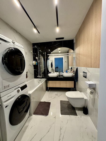 Mieszkanie zostało oddane do użytkowania w 2023 roku, jest w pełni umeblowane i wyposażone, gotowe do zamieszkania bez dodatkowych nakładów finansowych. Całość urządzona w jasnej, neutralnej kolorystyce.
