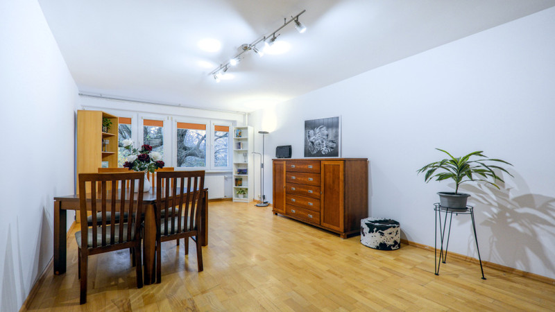 w stanie dobrym, tylko 5 minut spacerem do stacji metra Wilanowska, bardzo dobrze skomunikowane (tramwaje, autobusy). Pełna infrastruktura, sklepy (Biedronka, Frac) i szkoła podstawowa, 2 parki w okolicy do każdego ok 15 minut piechotą (Park Królikarnia i Park Enklawa). W koło nieruchomości dużo terenów zielonych. Widok z okien na teren zielony i przestrzeń rekreacyjną. Powierzchnia dodatkowa to przynależna piwnica. Opłaty czynsz ok 950 zł ( 2 os) Dostępne od 01.11.2025 r. Mieszkanie bez balkonu, rok budowy budynku 1975 r. Za kontakt z agencjami dziękuję.