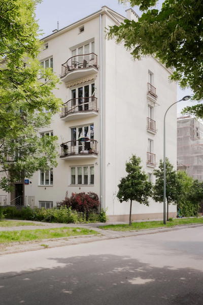 Kamienica stoi cofnięta od ulicy, z zielonym dziedzińcem i detalami, których nie da się dziś odtworzyć w nowym budownictwie.