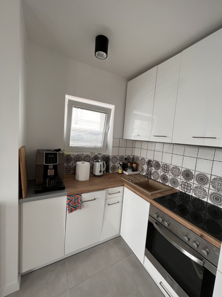 Prywatnie. Do sprzedania przytulne, zadbane i wyjątkowo ciche mieszkanie na ostatnim, 10 piętrze, w jednoklatkowym bloku. Budynek usytuowany jest 5 min spacerem do stacji metra Wierzbno oraz linii tramwajowych 18 i 13. Do Galerii Mokotów spacerem 20 min. Mieszkanie składa się z salonu z wyjściem na duży, słoneczny balkon, kuchni z jadalnią, sypialni i łazienki z kabiną prysznicową. Blok z 1968 roku, docieplony, ma nową elewacją, wyposażony w dwie nowe windy a do lokalu przynależy wyremontowana spora piwnica. Z mieszkania rozpościera się ładny widok, nieograniczony sąsiednimi budynkami. Miesięczny czynsz wynosi około 800 zł. Mieszkanie jest umeblowane z wyposażoną kuchnią: zmywarka, piekarnik, płyta elektryczna. W lokalu nie ma gazu. Klatka zamykana, cicha i zadbana. Transakcja wyłącznie prywatna.