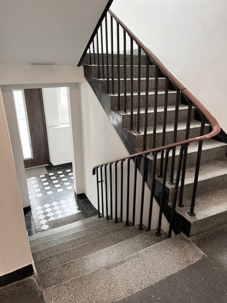 Mieszkanie zostało wyremontowane w 2024 roku. Dużym problemem kamienic z tych lat, co ukrywane jest przez właścicieli, jest położona pod podłogą trująca papa. W tym wypadku cała podłoga została zerwana, zabezpieczona nową wylewką i została wyłożona dobrej jakości kaflami.