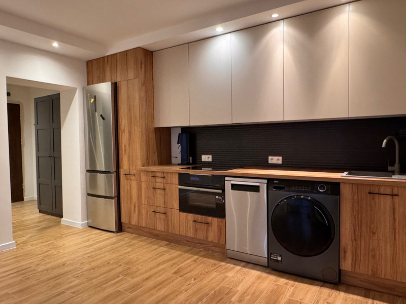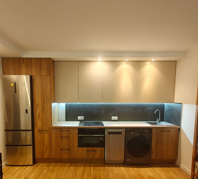 Kuchnia została zamontowana również w 2024 roku jak i wyposażona zabudowa w sprzęt AGD firmy Haier. Lodówka, zmywarka oraz pralko - suszarka.