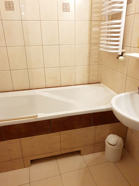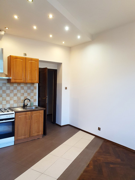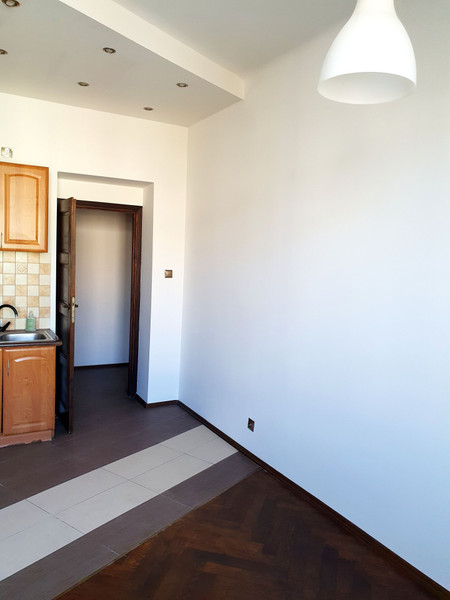 Obecnie mieszkanie zostało odświeżone i pomalowane na biało. Podłoga dębowy parkiet raczej wymaga już cyklinowania i lakierowania. Nowy właściciel zapewne zrobi sobie nową kuchnię i być może wymieni elementy w łazience.