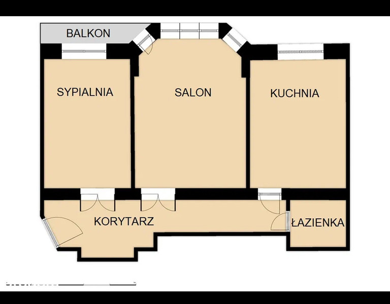 Mieszkanie składa się z sypialni, dużego salonu z wykuszem, kuchni, łazienki z toaletą i przestronnego hallu.