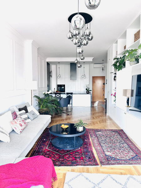 Przestronne mieszkanie na Starym Mokotowie w cichej i zielonej okolicy. Blisko metra i komunikacji miejskiej. Mieszkanie znajduje się w eleganckim apartamentowcu z ochroną i podziemnym parkingiem. Niedawno całkowicie wyremontowane. Możliwość dokupienia miejsca parkingowego.