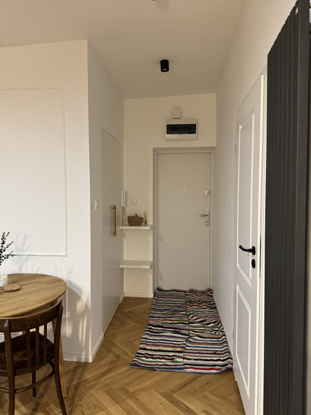 The windows overlook a green courtyard accessible only to residents, providing a peaceful view of the trees. The building is located in Old Mokotów (Stary Mokotów), a wonderful district close to the center of Warsaw with a rich cultural and gastronomic offer, numerous parks, and green areas. In close proximity are the SGH Warsaw School of Economics and the southern campus of the Warsaw University of Technology.