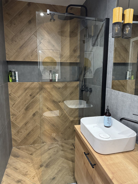 The apartment underwent a total renovation 2 years ago. It was finished to a high standard for personal use ("for myself") using quality materials and shows no visible signs of wear. By removing some walls and changing the functional layout, the interior has become more spacious and efficient.