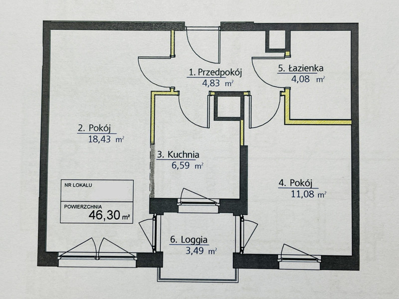 Mieszkanie bardzo zadbane, niemal nowe, o pow. 46.3m kw, na VI, przedostatnim piętrze.
