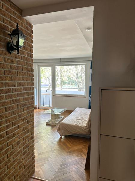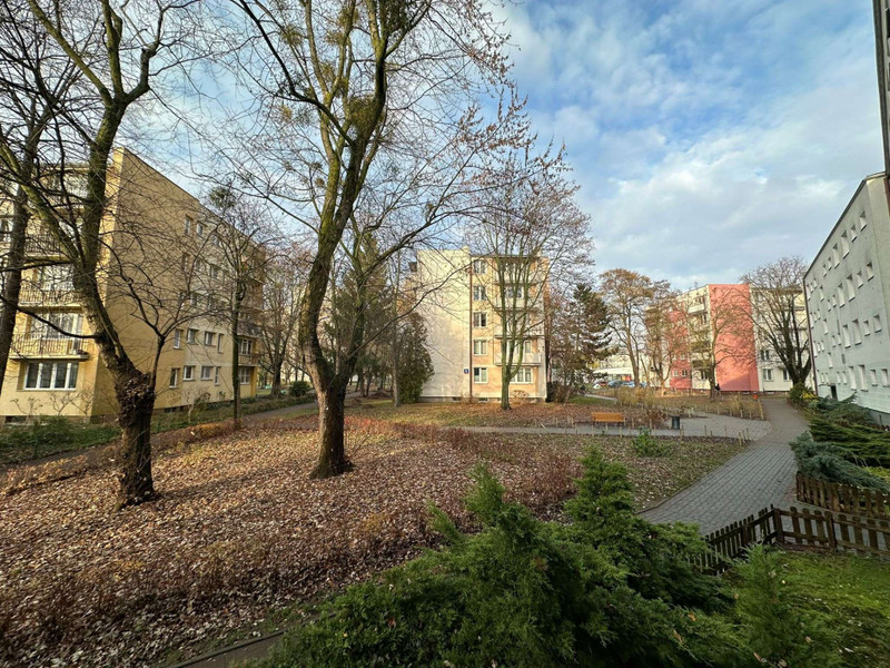 Okolica jest bardzo spokojna i zielona, z okien kuchni łazienki i sypialni widok na skwerek/park z dużą ilością drzew i alejek.