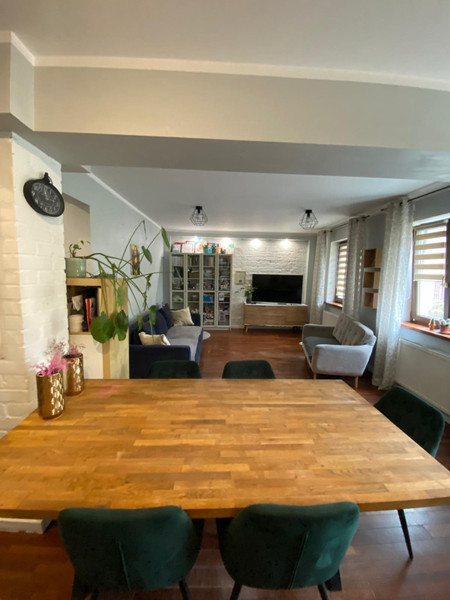 Na podłogach deska drewniana merbau, w łazience deska drewniana teak, okna PCV.