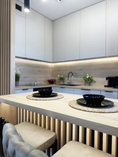 Dzięki zastosowaniu materiałów wysokiej klasy, mieszkanie - nie tylko prezentuje się doskonale, ale także spełnia najwyższe standardy funkcjonalności i trwałości, tworząc komfortowe i luksusowe miejsce do życia.