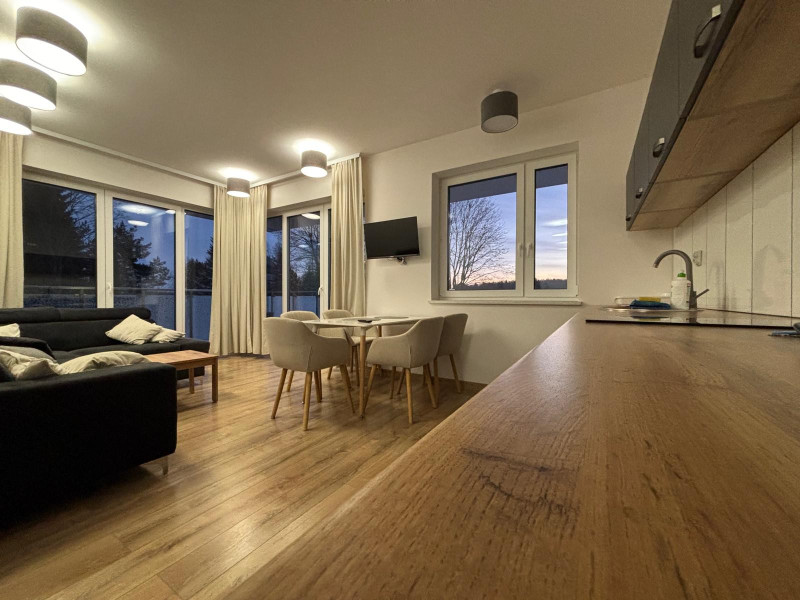 Na sprzedaż komfortowe, w pełni urządzone mieszkanie o powierzchni 57 m², położone nad jeziorem Juno w Mrągowie, przy ul. Młodkowskiego 40d. Z mieszkania piękny widok na niesamowite jezioro. Mieszkanie składa się z trzech pokoi, w tym przestronnego salonu z aneksem kuchennym, dwóch sypialni, łazienki i przedpokoju. Wnętrze jest nowoczesne, jasne i gotowe do zamieszkania – nie wymaga żadnych nakładów finansowych. W cenie sprzedaży pozostaje całe wyposażenie widoczne na zdjęciach, w tym meble oraz sprzęty AGD (m.in. zmywarka). Do mieszkania przynależy miejsce parkingowe (w cenie mieszkania). Cena mieszkania 15 000 zł za m² (faktura Vat 23%).