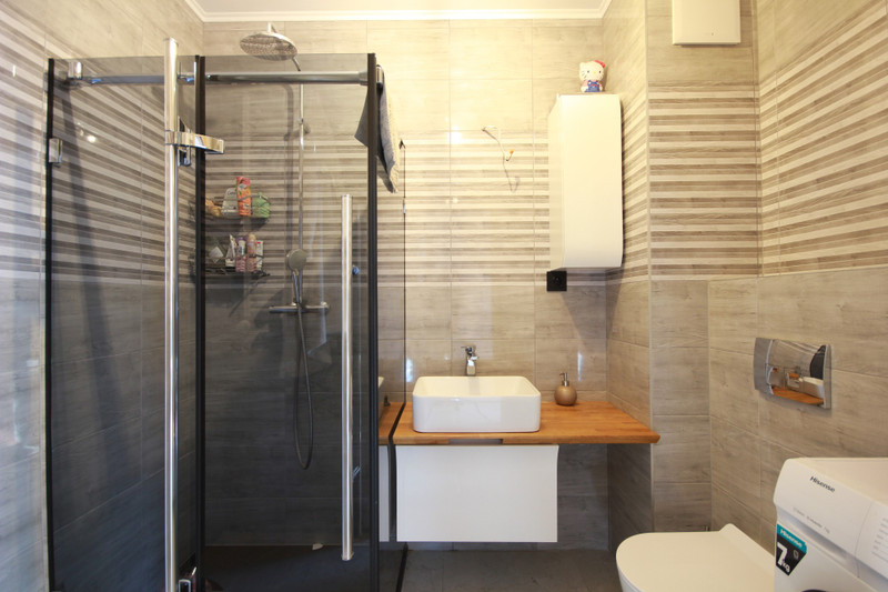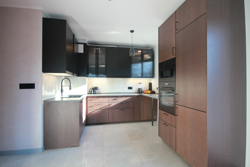 Wykończenie w wysokim standardzie: gres ceramiczny, parkiet egzotyczny, sprzęt kuchenny w zabudowie – zmywarka, lodówka, piekarnik, mikrofala, płyta indukcyjna; w łazience pralka.