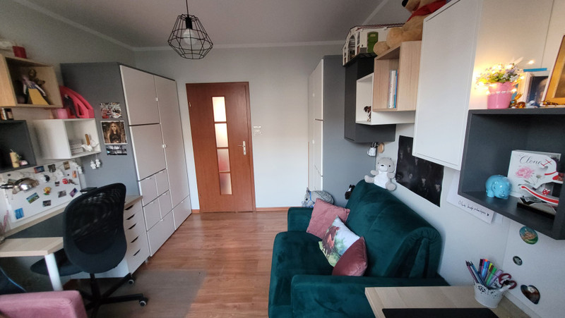 • wschodniej z 2 sypialniami ( każda 11 m2 ), osobną i bardzo pojemną garderobą (3 m2), łazienką ( 3,95 m2) oraz korytarzem (7 m2) z pojemną i praktyczną szafą wykonaną na wymiar przez stolarza z Obornik ( po 15 latach szafa wygląda rewelacyjnie , ten sam stolarz wykonał zabudowę na wymiar w łazience ).