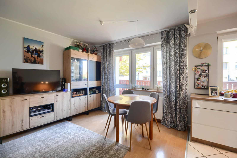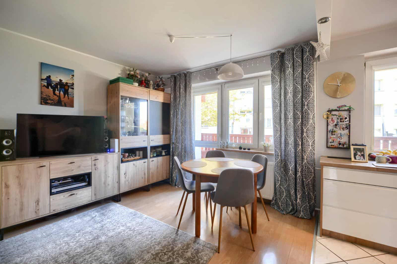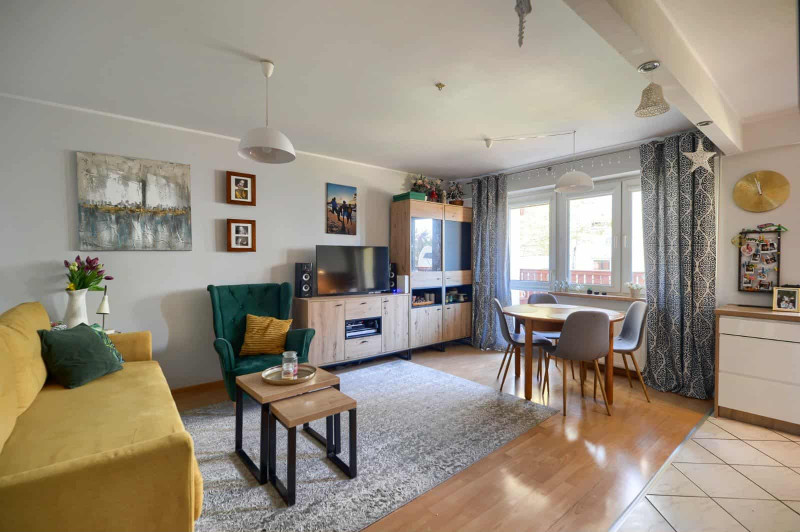 • jasny i przestronny salon wraz z aneksem kuchennym, idealny do komfortowego przygotowania posiłków oraz wspólnego spędzania czasu,