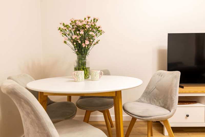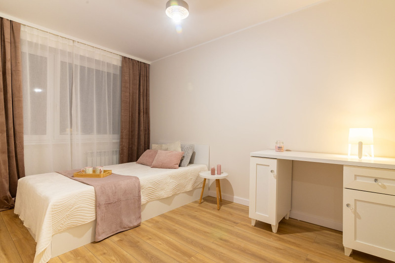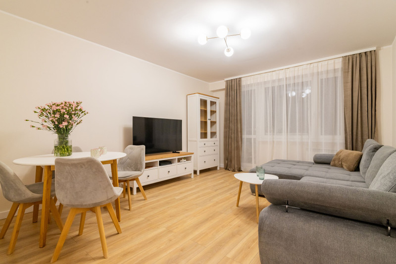 Mieszkanie sprzedawane jest z pełnym wyposażeniem i meblami widocznymi na zdjęciach — gotowe do wprowadzenia, bez dodatkowych nakładów finansowych.