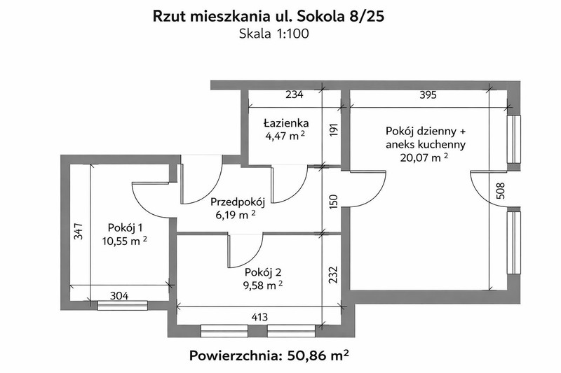 Na sprzedaż mieszkanie o powierzchni 50,86 m², z dużym balkonem i praktycznym rozkładem pomieszczeń – idealne zarówno dla pary, singla, jak i inwestora pod wynajem.