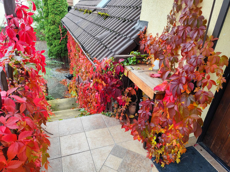 Blaszany warsztacik + drewniany schowek (ok. 10 m²) z prądem. Niewielki zagospodarowany ogródek: iglaki, winobluszcz, winogrona, trawnik, ławka. Wybrukowane podwórko. Całość ogrodzona i zamykana