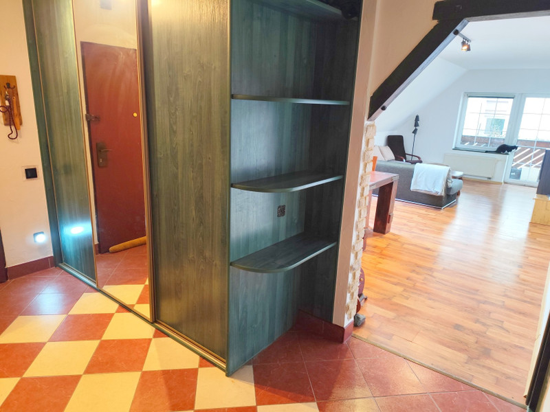 Z salonu wyjście na wykończony drewnem balkon/taras o powierzchni 12 m² (8 m długości).