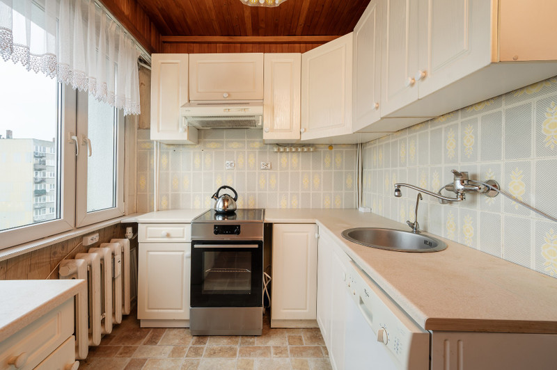 Stan techniczny nieruchomości wymaga remontu, co daje przyszłym właścicielom możliwość aranżacji według własnych potrzeb i gustu. Kuchnia wyposażona jest w meble w zabudowie, zmywarkę oraz płytę elektryczną. W łazience znajduje się wanna i umywalka, Mieszkanie posiada oddzielne WC. Wysokość pomieszczeń wynosi 250 cm. Na życzenie klienta wyposażenie może pozostać lub zostać usunięte.