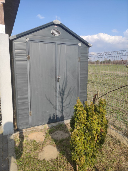 · Duży domek ogrodowy [ok. 8 m.kw.] na poziomie „0”, tuż obok schodów. Idealny do przechowywania narzędzi, sprzętów ogrodniczych oraz ew. rowerów lub np. motocykla.