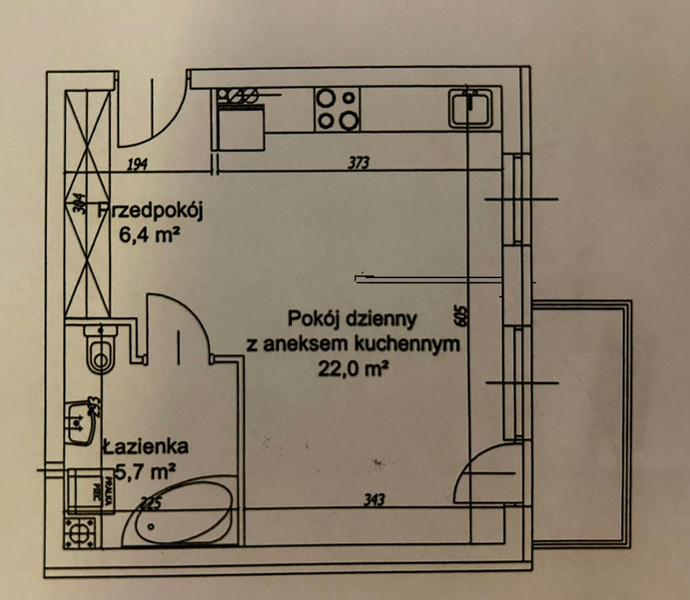 • dodatkowo istnieje możliwość wydzielenia oddzielnej sypialni w miejscu kuchni.