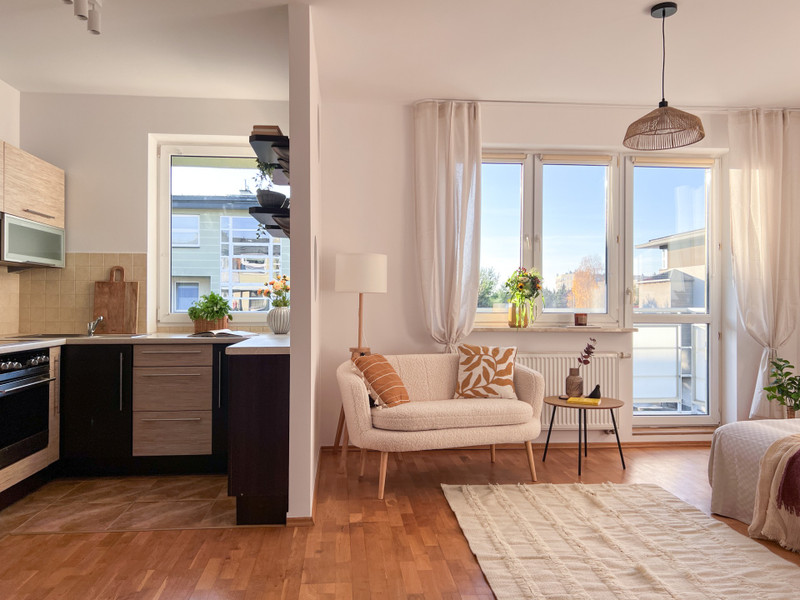 The apartment combines functionality, comfort, and an attractive location—ideal for a single person or couple looking for a quiet, safe place to live, with excellent connections to Warsaw.