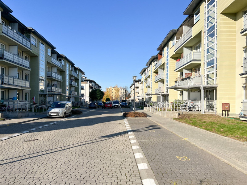 We offer a comfortable studio apartment with an area of 34 m², located on the 2nd floor of a 3-story, elegant building from 2007, part of a gated, fenced residential complex with security. The estate consists of 6 buildings with underground garages, parking spaces for guests, a playground, and a common area for residents.