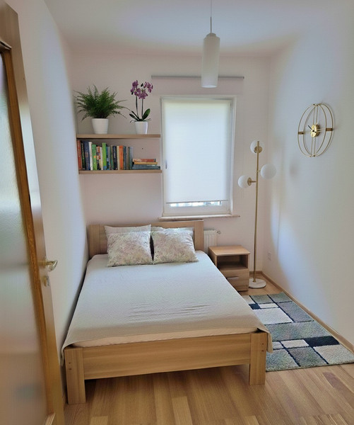 Mieszkanie jest bardzo ciepłe, jasne i przyjemne. Składa się z salonu z aneksem kuchennym, sypialni z miejscem na pełnowymiarowe łóżko i zabudowę do przechowywania, funkcjonalnej garderoby, przedpokoju, łazienki z kabiną prysznicową i toaletą.
