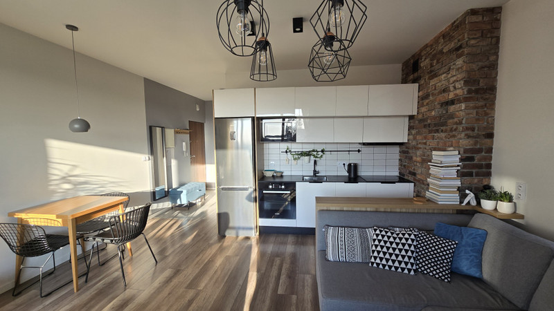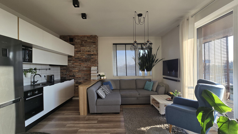 Mieszkanie jest w idealnym stanie, w pełni wykończone i wyposażone w zabudowy stałe w sypialni, łazience oraz kuchni (wraz ze sprzętami AGD, tj. piekarnik, mikrofalówka, zmywarka, płyta indukcyjna, okap).