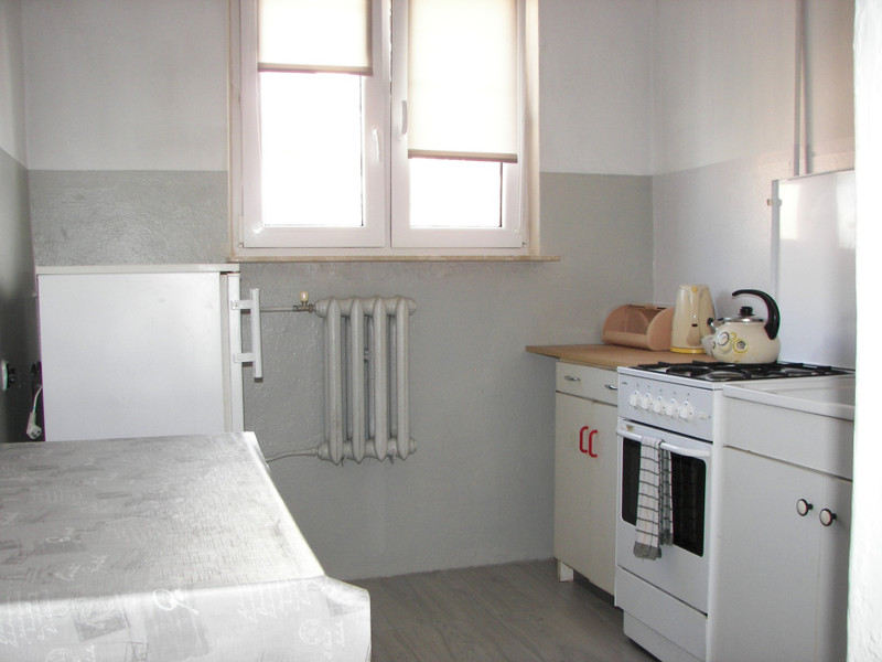 Mieszkanie składa się z kuchni, salonu z balkonem, dwóch sypialni, łazienki i piwnicy. W okolicy znajdują się : ośrodek zdrowia, szkoła podstawowa, sklepy. Bardzo dobre połączenie komunikacyjne z centrum miasta. Czynsz około 600 zł/mies.