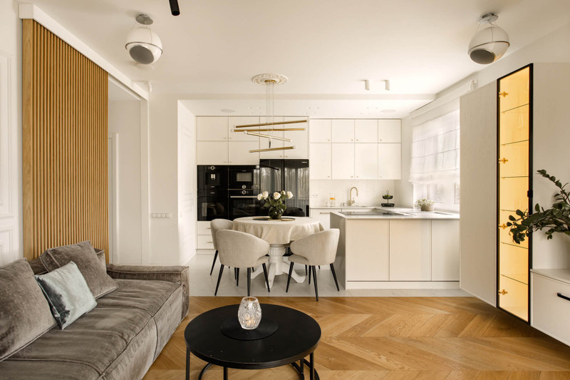 • pełne wyposażenie AGD (lodówka side by side, piekarnik, ekspres, winiarka)