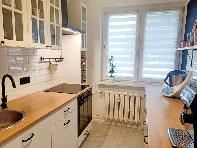 Mieszkanie jest ciepłe i widne - środkowe, wystawa okien to południowy-wschód salon i sypialnia oraz północny-zachód kuchnia i druga sypialnia. Okna plastikowe, grzejniki w większości wymienione na nowe, są podzielniki ciepła. Kuchnia ikea z płytą indukcyjną (przyłącze gazu jest pozostawione w mieszkaniu). Drzwi antywłamaniowe, wygłuszające, klatka schodowa po remoncie, z wiatrołapem i domofonem.