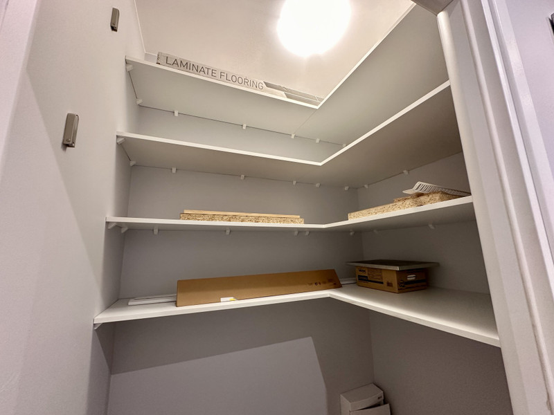 Dodatkowym atutem jest spiżarnia w mieszkaniu, również zabudowana półkami robionymi na wymiar – bardzo praktyczne miejsce do przechowywania.