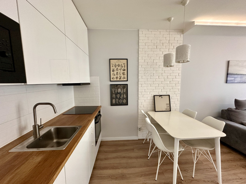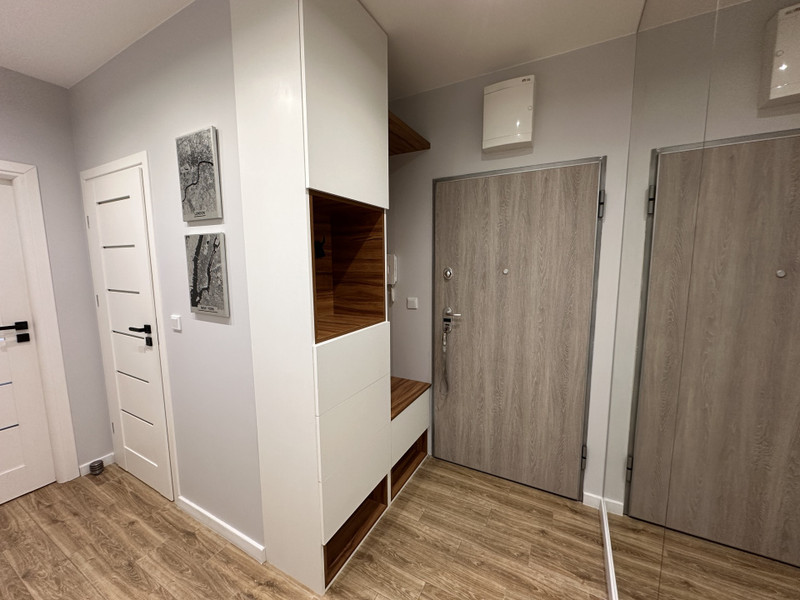 Mieszkanie sprzedaję w pełni umeblowane i wyposażone. W kuchni znajduje się sprzęt AGD: lodówka Samsung, piekarnik Samsung Dual Cook, płyta Electrolux, okap Samsung, zmywarka 60 cm Electrolux, mikrofalówka Amica oraz pralko-suszarka LG.