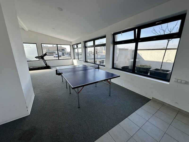 Na ostatnim piętrze budynku znajduje się przestrzeń dostępna tylko dla mieszkańców. Jest tam strefa do ćwiczeń (cardio / mała siłownia), stół do ping-ponga oraz taras z widokiem na miasto, gdzie można posiedzieć, odpocząć albo spotkać się ze znajomymi.