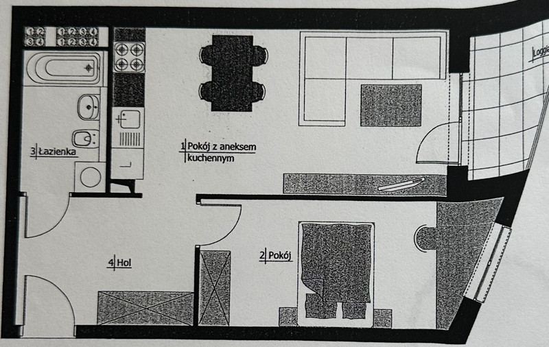 Dużym plusem jest loggia o powierzchni 5,36 m². Loggia jest już urządzona – stoją tam meble balkonowe z IKEA, więc można od razu korzystać.