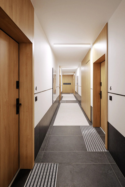 Mieszkanie posiada wygodną łazienkę oraz ustawny korytarz z miejscem na zabudowę. Duże okna zapewniają doskonałe doświetlenie wnętrz i poczucie przestrzeni. Inwestycja charakteryzuje się nowoczesną architekturą, wysokim standardem części wspólnych oraz dbałością o detale. Osiedle jest kameralne, monitorowane i zaprojektowane z myślą o wygodzie mieszkańców.