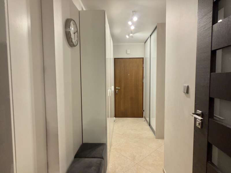 Mieszkanie mieści się na I piętrze bloku wybudowanego w 2009 roku na osiedlu „Nad Wodą”. Wejście do klatki zabezpieczone domofonem. Obok budynku ogólnodostępne miejsca postojowe oraz dla gości przed wjazdem na osiedle. Budynek wybudowany z pustaka, na dachu papa i dachówka. Klatka schodowa szeroka i zadbana. Osiedle jest ogrodzone oraz chronione 24/7 przez ochronę, wjazd zabezpieczony szlabanem. Mieszkanie oferuje funkcjonalny układ . Przestronny i jasny salon z panoramicznym oknem od strony południowo-zachodniej zapewnia doskonałe doświetlenie wnętrza oraz przyjemny widok na zieleń. Kuchnia z oknem jest otwarta na część dzienną, co tworzy komfortową, nowoczesną przestrzeń do codziennego życia. Sypialnia zlokalizowana jest po przeciwnej stronie mieszkania, od strony północno-wschodniej, dzięki czemu jest cicha i sprzyja wypoczynkowi. Łazienka posiada duże okno oraz wyposażona jest w wannę z funkcją prysznica. Przestronny korytarz umożliwia wykonanie pojemnej zabudowy. Położenie na pierwszym piętrze czyni mieszkanie wyjątkowo komfortowym i uniwersalnym.