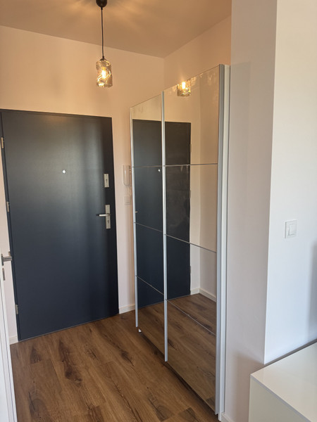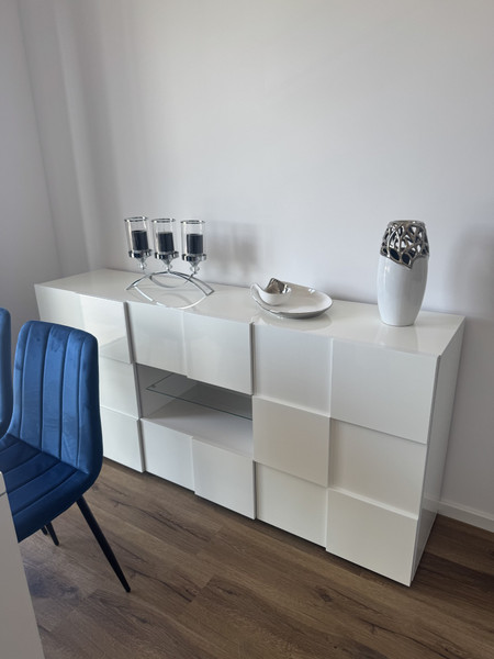 Na ścianach gładź tynkowa. W pokoju, aneksie kuchennym oraz przedpokoju na podłogach panele winylowe, w łazience terakota. Okna PCV z roletami plisowanymi z dobrymi parametrami izolacji termicznej i przeciwsłonecznej. Całość wykończona w jasnych kolorach z dbałością o szczegóły i detale w minimalistycznym stylu.