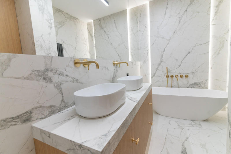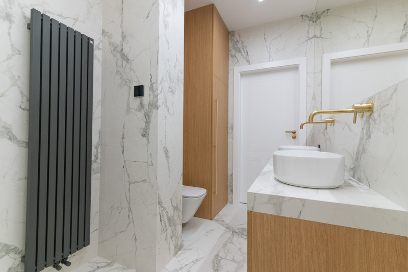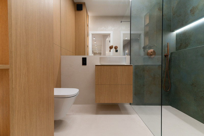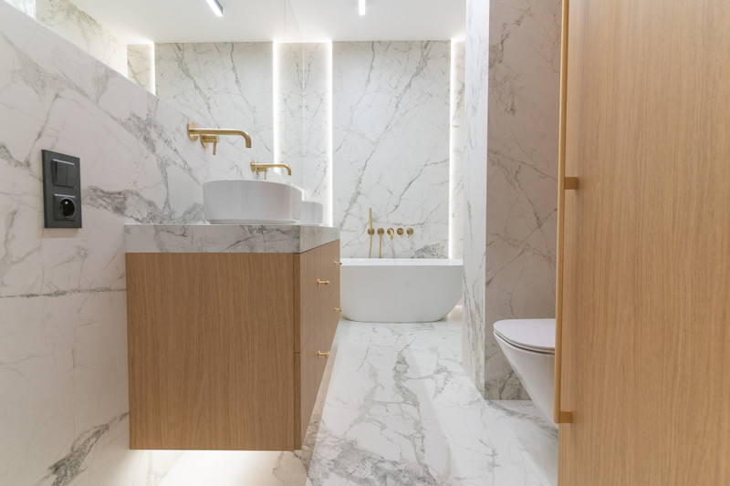 • Dwie łazienki wykończone włoskimi spiekami (270 × 120 cm)