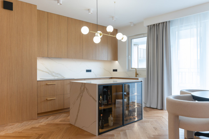 • Kuchnia na wymiar z wyspą – włoskie spieki kwarcowe