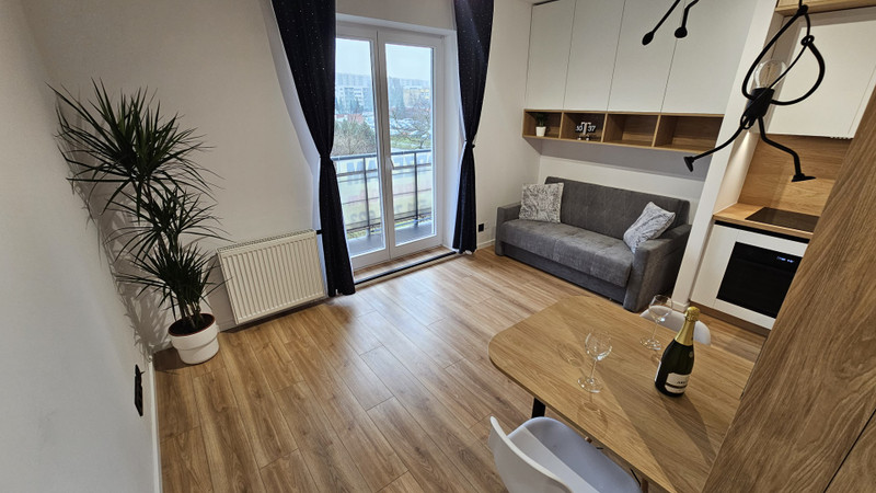 Mieszkanie o powierzchni 20,9 m² zostało zaprojektowane jako kompletna, funkcjonalna przestrzeń klasy premium, bez kompromisów i bez przypadkowych decyzji. Naturalnym przedłużeniem wnętrza jest przestronny balkon o powierzchni około 4 m², z widokiem na zieleń. Duże, dwuskrzydłowe drzwi balkonowe z nowymi uszczelkami zapewniają doskonałe doświetlenie, ciszę oraz bardzo dobrą izolację termiczną. Położenie na pierwszym piętrze dwupiętrowego budynku oraz kameralna klatka licząca jedynie osiem mieszkań gwarantują prywatność i spokój, rzadko spotykane w tej części miasta.